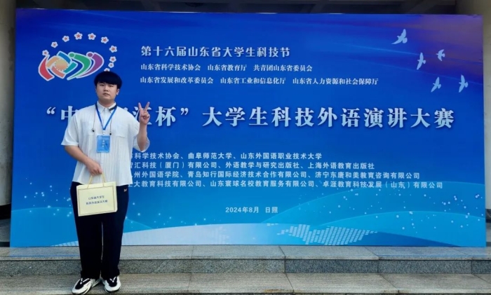 为进一步推动科技外语人才培养,提升大学生科技外语演讲水平,山东省第十六届大学生科技节“中语智汇杯大学生科技外语演讲大赛”于2024年8月31日圆满落下帷幕。本次比赛由山东省科学技术协会、山东省教育厅、共青团山东省委等单位牵头举办,吸引了各省市76个高校的研究生、本科生参与。四川传媒学院国际教育学院影视摄影与制作专业(韩语方向)的卢翰宇同学凭借出色扎实的韩语实力和稳健的演讲口才,以高分进入总决赛,并在决赛中荣获三等奖。