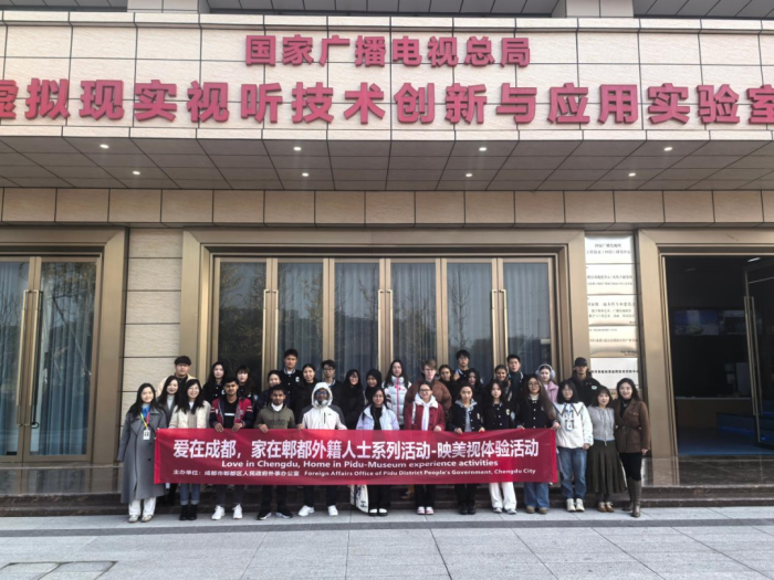 近日,"'爱在成都,家在郫都'外籍人士系列活动—映美视体验活动”在四川传媒学院站顺利开展。“爱在成都,家在郫都外籍人士系列活动”由郫都区人民政府外事办公室主办,通过城市感知、文化体验和趣味游戏等不同形式的主题活动向外籍人士多形式展现 “科创高地、锦绣郫都” 的独特魅力,促中外文化互通,提升外籍人士认同感与融入感。参与本次活动的外籍人士为四川工业学院的留学生们。此次活动为留学生们打开了一扇深入了解四川传媒学院的窗户,也为中外学子搭建起一座友谊与文化交流的桥梁。