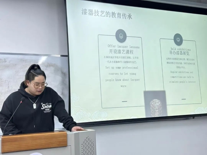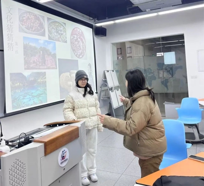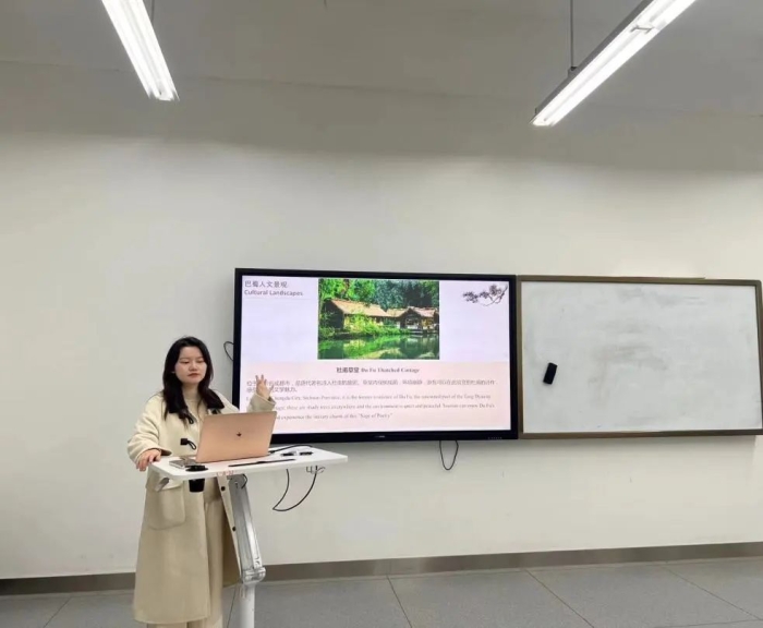 在活动之前,老师带领同学们深入探索了巴蜀地区丰富多样的非物质文化遗产。从历史悠久的川剧,到独具匠心的竹编工艺;从风味独特的川菜文化,到神秘古老的蜀绣艺术。在讲解过程中,教师巧妙地融入了相关的专业英语词汇、短语及句型,并通过适时的提问,引导同学们积极思考并用英语回答,有效检验了大家的理解程度,进一步促进了知识的吸收与运用。
