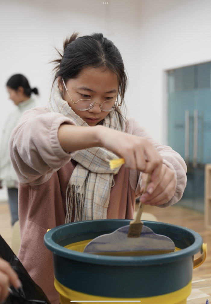 为了丰富大学生们的课余生活,培养他们的创造力、想象力和审美情趣,同时促进大学生们之间的合作与交流,传播非遗文化,11月28日,国际教育学院团总支联合微光志愿者协会组织了一场主题为“以漆为美,传承非遗”的漆扇美育手工活动。