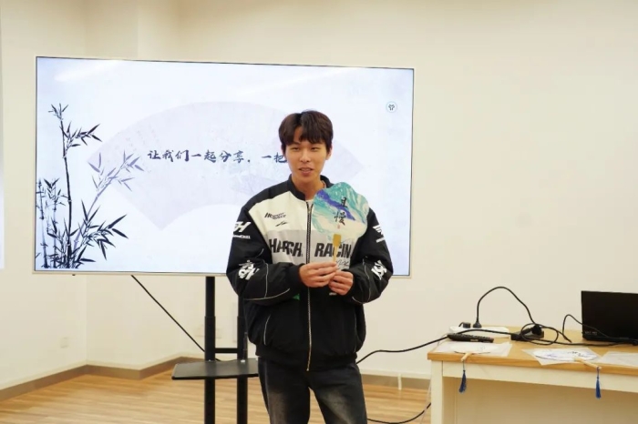 在活动开始之初,国际教育学院的志愿者们为大家介绍了中国的非遗文化,讲解了非遗漆扇的历史渊源、文化内涵和制作工艺。通过生动的讲解和展示,同学们对非遗漆扇有了初步的了解和认识。