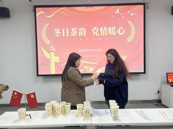 这一杯杯热奶茶,看似简单,实则蕴含着深切的关怀与情谊。它是在繁忙工作间隙的一份慰藉,让党员教师们在寒冷冬日感受到党组织的贴心。奶茶的温热,恰似党组织给予的温暖怀抱,驱散了冬日的严寒,也舒缓了工作的疲惫。在国际教育学院这个大家庭里,我们不仅共同肩负着教育的使命,更在相互关心中携手前行。