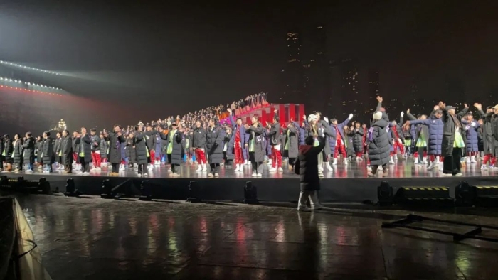 这次春晚实习最让我深刻感触的是导演组对“人民的春晚”这一理念的坚持令我动容。顾志刚导演带领团队反复打磨节目,甚至凌晨仍在调整舞蹈姿势;安保人员为管控区域的安全通宵值守。作为场务,我学会了在高压下保持冷静:一次突降大雨导致舞台地面湿滑,室外温度骤降我们迅速为一千多号演职人员发放提前准备好的各种物资,未耽误彩排进度。这种应变能力是课堂无法教授的珍贵经验。