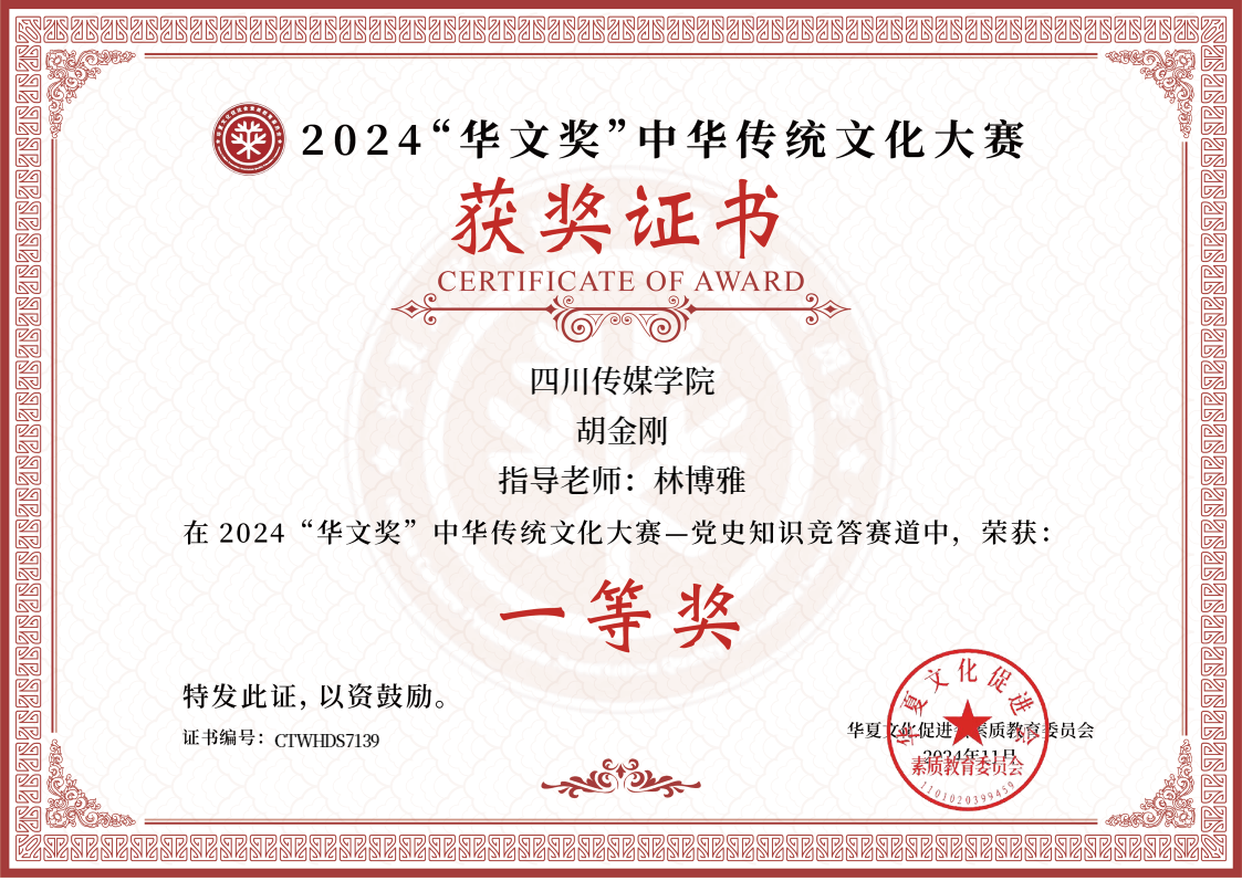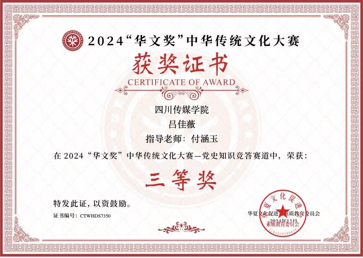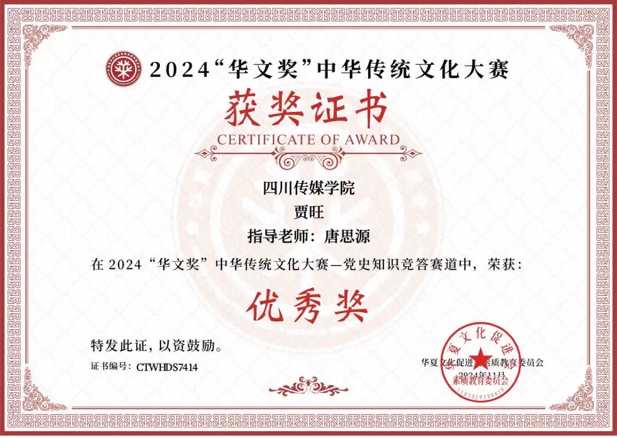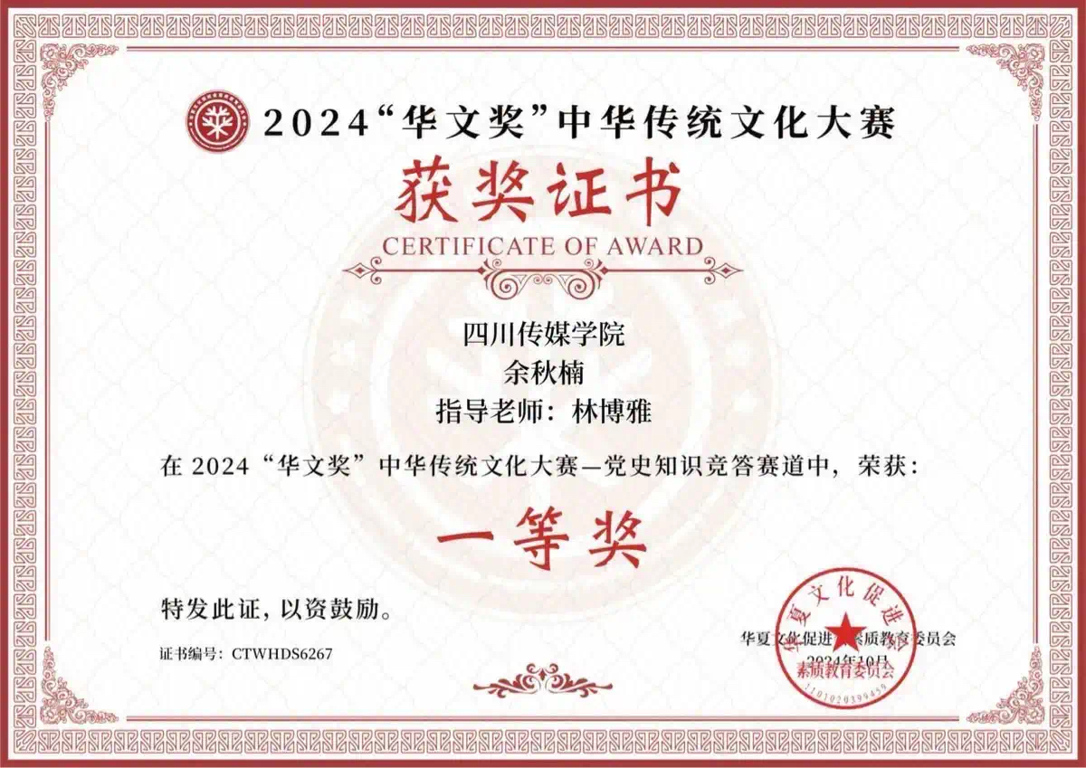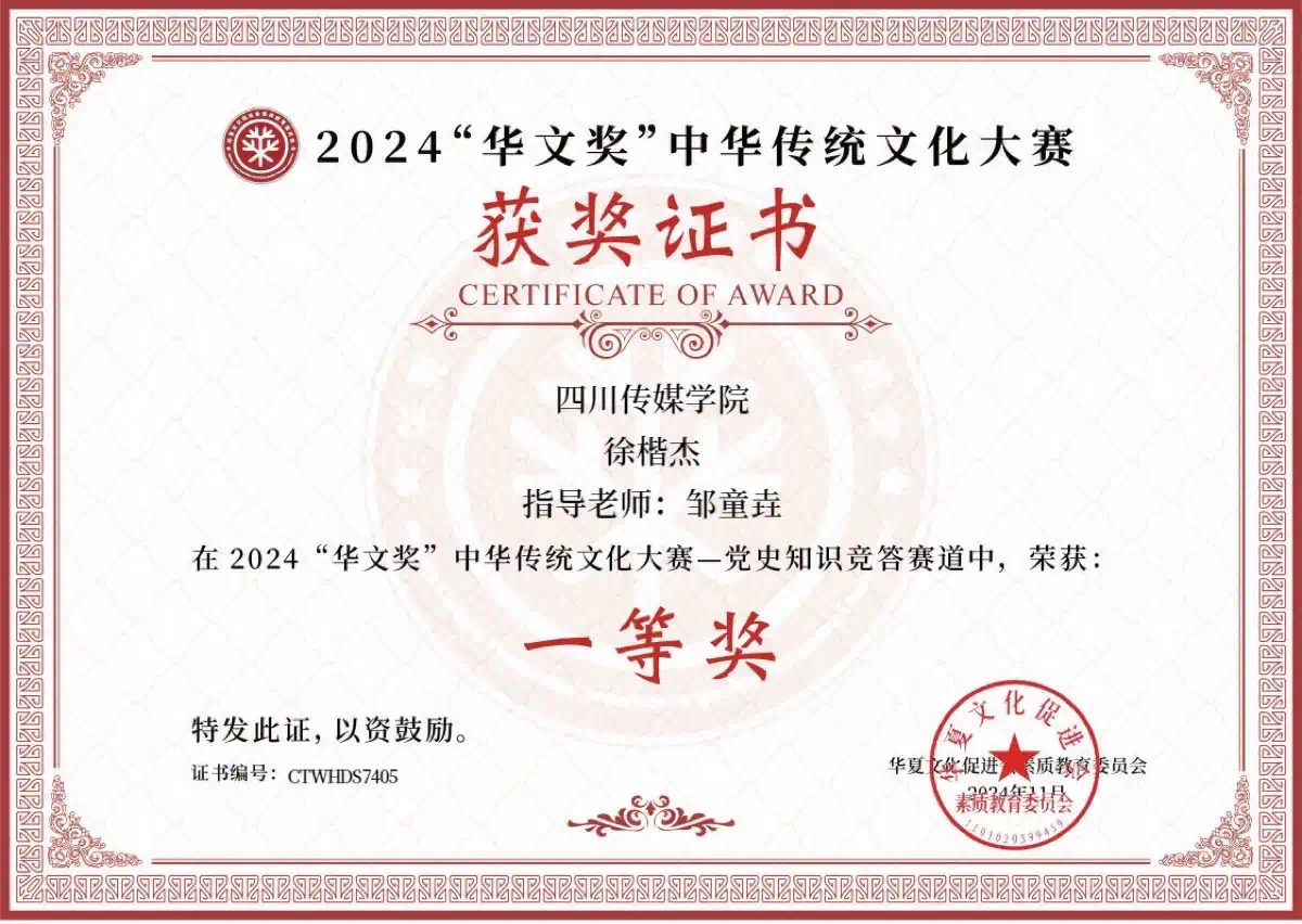 国际教育学院学生党支部在2024“华文奖”中华传统文化大赛——党史知识竞赛答题道中喜获丰硕成果,展现出学生们深厚的红色文化底蕴与政治素养。本次赛事作为深化党史学习教育的重要实践,吸引了20名学生党员代表参赛,共有20名学生荣获个人奖项,其中一等奖14人、二等奖2人、三等奖1人、优秀奖3人,另有5名教师获评"优秀指导老师",学生党支部获"优秀组织单位"称号。