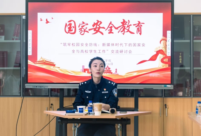 保卫工作部部长黄华出席讲座,会议由国际教育学院党总支副书记付涵玉主持,邀请驻地公安系统资深警务专家万警官作专题辅导,全体辅导员参与研讨,共同探索国家安全教育创新路径,为新时代传媒人才培养注入思想动能。