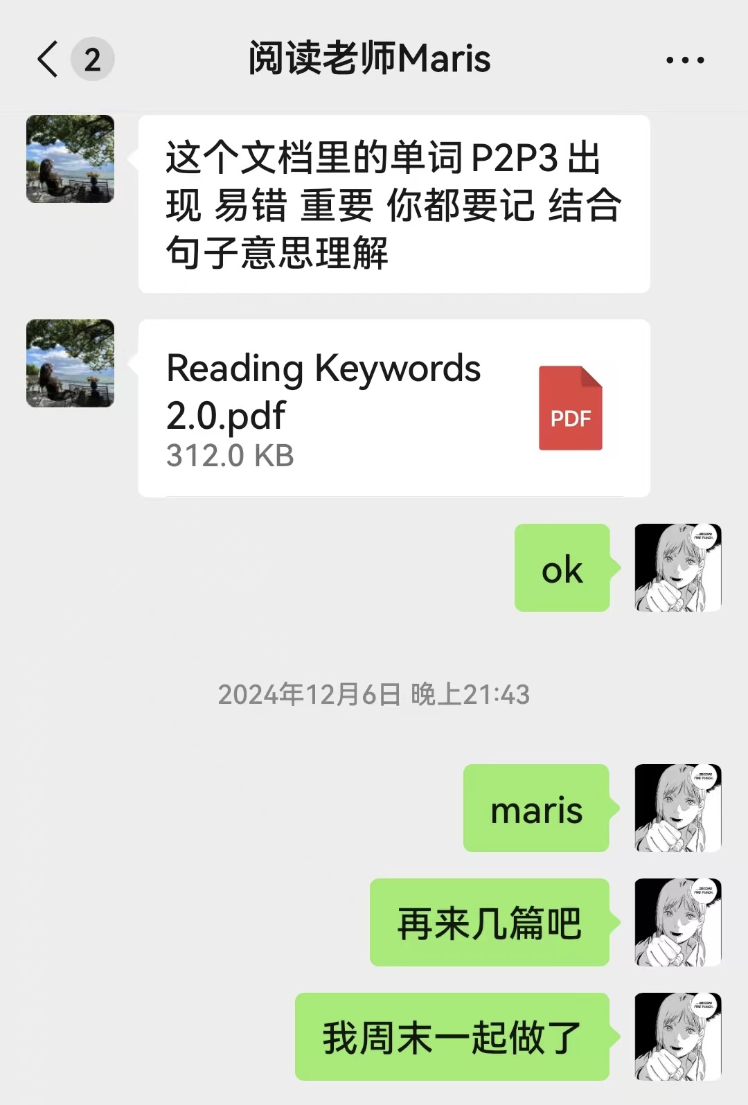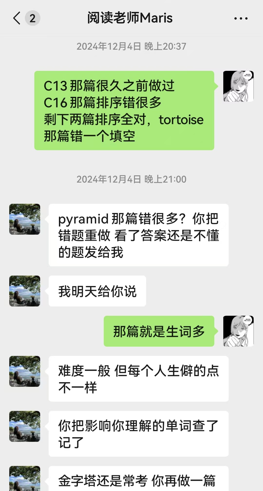 阅读课上,Maris马煦老师不厌其烦地剖析重点词汇、拆解长难句,传授精妙的解题方法,让我逐渐掌握阅读的精髓;
