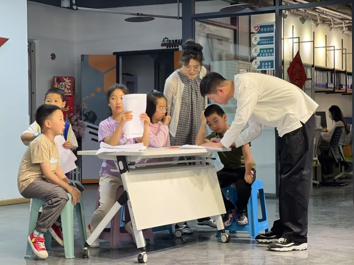 排练中,党员教师们化身“文化导师”,带领孩子们解析《天问》的哲思,让文化自信在童心中生根发芽。