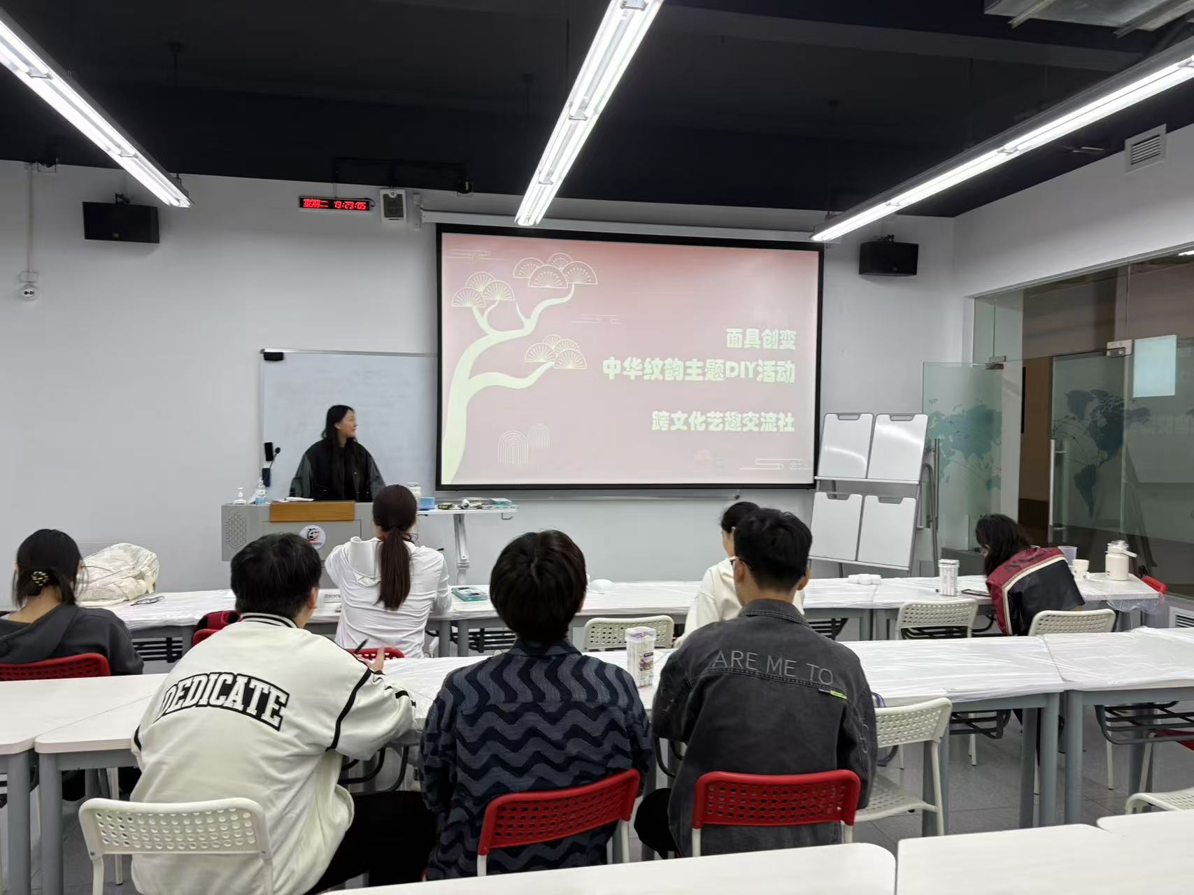 2025年4月29日,跨文化艺趣交流社团在四川传媒学院2A09教学楼205教室举办了“非遗面具创变—中华纹韵主题DIY活动”。本次活动以国家级非遗项目“马勺面具”为创作载体,融合中国传统纹样元素,打造了一场文化与艺术交融的青春盛宴。通过马勺面具DIY创作,引导同学们在手工与艺术的实践中融入自己的审美观念和审美情感,提升动手能力、创造力、审美鉴赏力;并进一步深入理解中国传统美学,增强文化自信,在创作中碰撞出传统文化创新交融的火花。