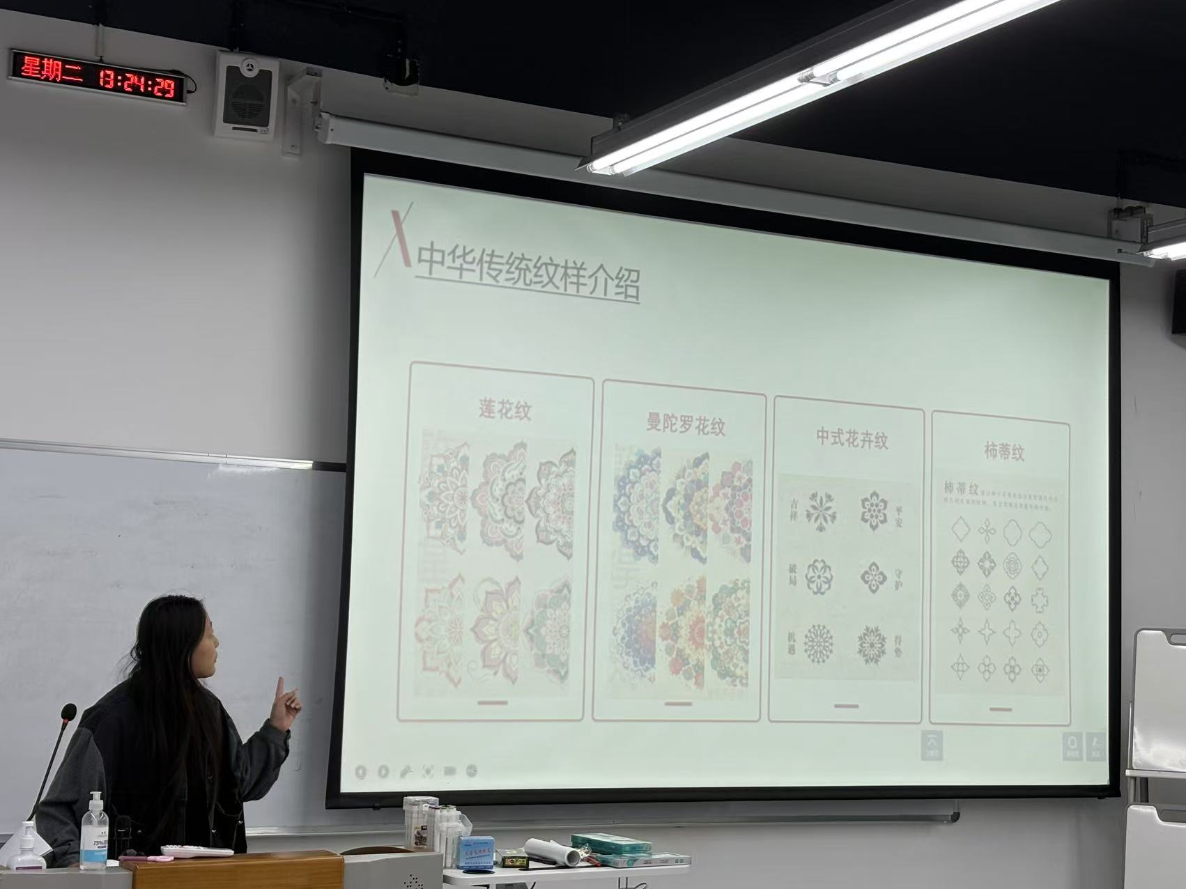 活动伊始,主持人通过精彩生动的介绍,为大家呈现了传统纹样背后的文化哲思。从青铜器上的‘云雷纹’,宋瓷上的‘冰裂纹’,到织锦间的‘流水纹’,再到象征吉祥的‘方胜纹’、‘盘长纹’、‘喜相逢纹’......,一幅幅纹样图案不仅是视觉的享受,更是中华千年文化的沉淀。