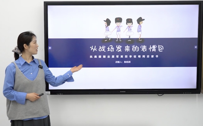 陈铭琪老师的课例《从战场发来的“表情包”》以抗美援朝时期志愿军战士李征明的亲笔信件为切入点,创新性地将青年喜爱的“表情包”媒介语言与红色家书融合,通过多媒体互动和跨文化对话等方式,引导学生在体会历史沉重感的同时,建立起对国家命运与个体情感的深层共鸣。课程在传承爱国主义精神的基础上融入国际教育视角,帮助学生在全球化语境中深化对中国精神、中国立场与中国价值的理解。
