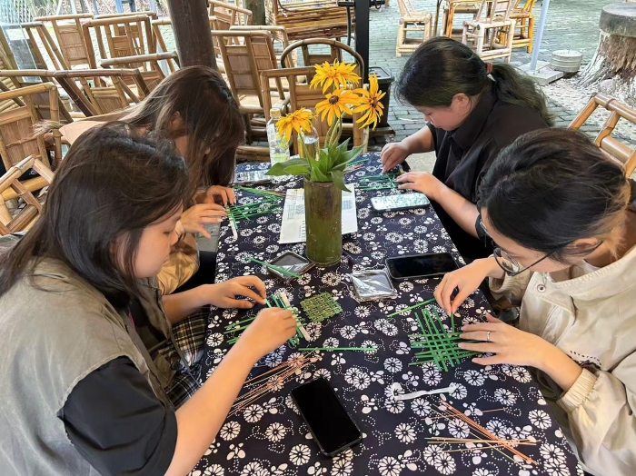 作为日语学习者,同学们还充分发挥语言优势,与传承人深入交流中日手工艺的异同,探讨传统技艺国际化传播的可能。产品设计专业的学生更从材料、功能、美学等角度提出创新设想,为竹编注入当代设计活力,彰显了“非遗+”的无限潜力。