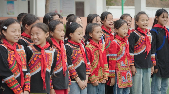 随后,大家移步操场,开启快闪之旅,共同唱响经典红歌《情深谊长》,大家的声音在山间交织,化作悠扬的“山河交响”,孩子们真诚的笑脸,让不分彼此的情感在歌声中自然流淌。