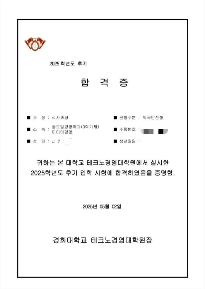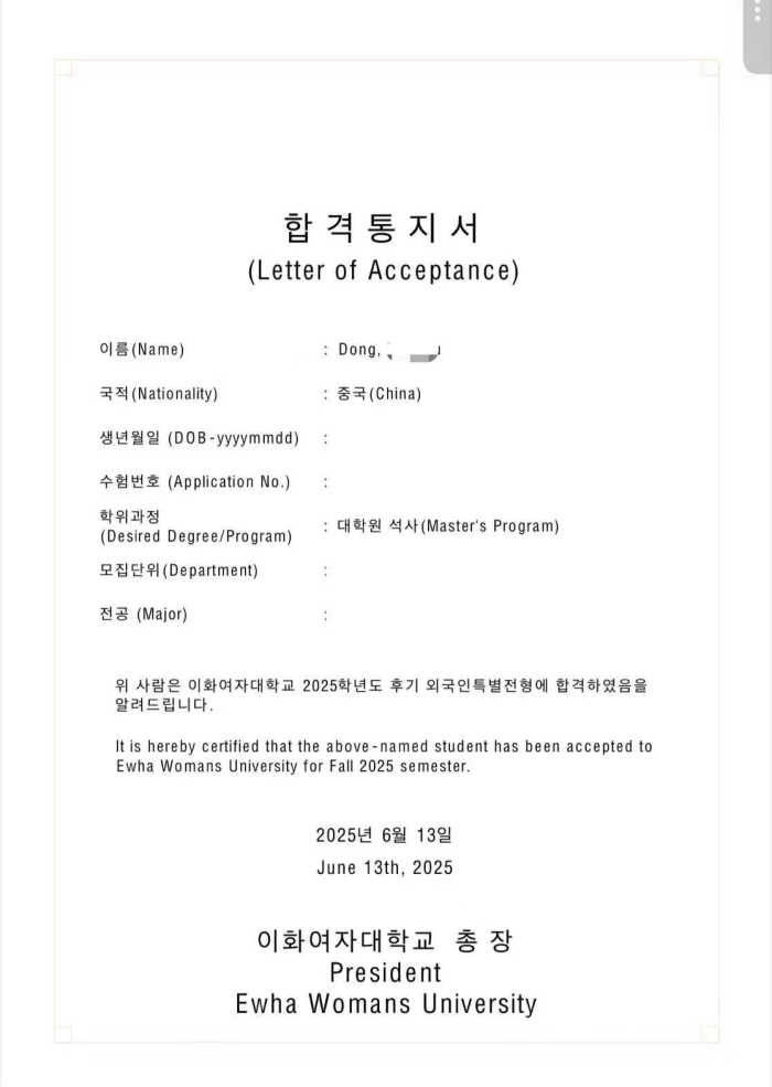 四川传媒学院国际教育学院韩语方向2025届毕业生海外升学捷报频传!本届学子凭借优异的TOPIK成绩和扎实的专业背景,获得韩国名校硕士研究生录取,更有多人同时斩获汉阳大学、庆熙大学、梨花女子大学、东国大学、仁荷大学等多所名校offer!这份亮眼的“升学成绩单”充分展现了川传国际教育学院学子的实力,祝贺所有成功圆梦韩国名校的同学们!未来可期,继续闪耀!