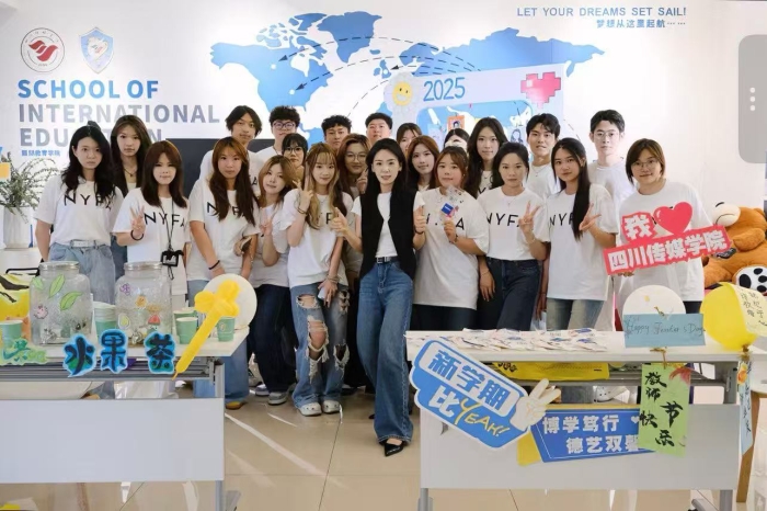 2025年9月10日,四川传媒学院国际教育学院2025级新生代表以一场“师生艺术交流角”活动,向辛勤耕耘的教师们致以诚挚的敬意与感谢。活动以“以笔传情,感恩师恩”为主题,通过艺术互动的形式,搭建起师生情感交流的桥梁,营造了温馨和谐的学院文化氛围。