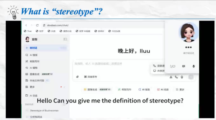 课程团队创新构建了“数智赋能的跨文化交际教学模式”。课程通过AI与数字化技术,动态创设高度仿真的多元文化场景与交际情境,让学生在“虚拟沉浸”中体验文化差异、锻炼沟通能力。