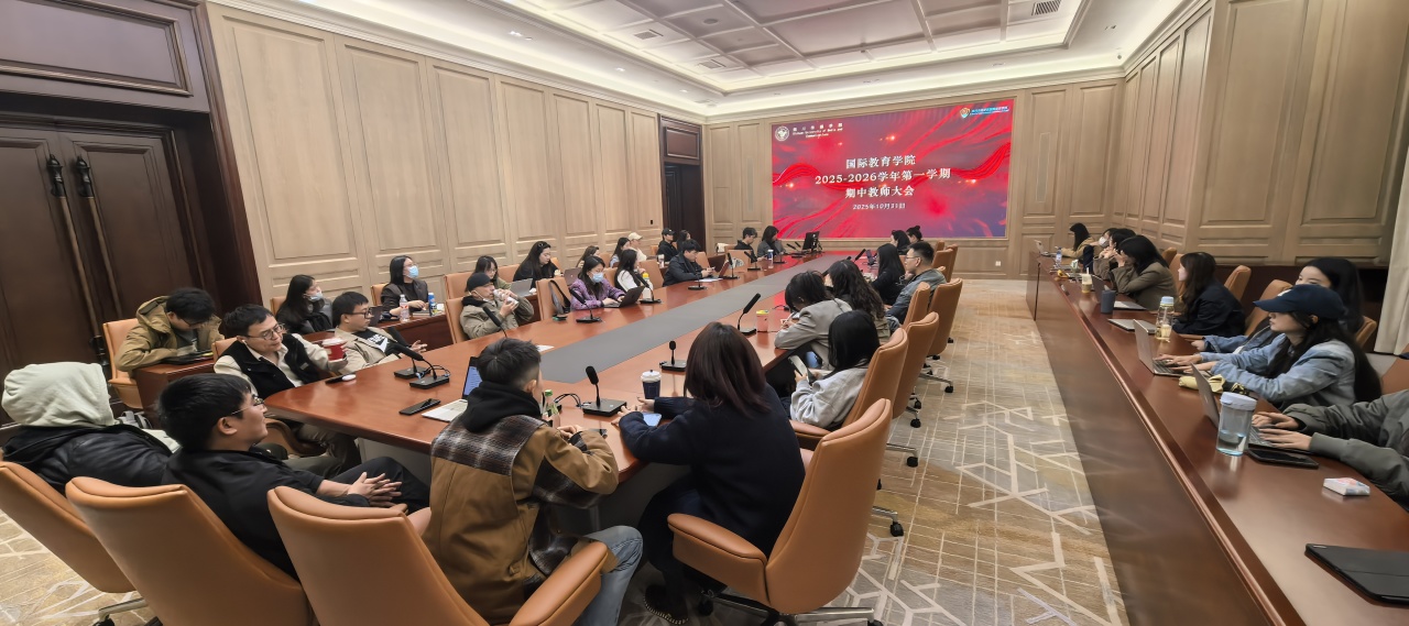 为深入学习贯彻习近平总书记关于教育的重要论述,全面落实立德树人根本任务,以高质量党建引领学院高质量发展,10月31日,国际教育学院召开2025-2026学年第一学期期中教师大会。会议紧扣“教学质量提升”与“师德师风建设”双主线,围绕教育教学、科研创新、学生管理等核心议题展开深入研讨,为学院下一阶段工作锚定方向。学院领导班子及全体教职工参加会议。