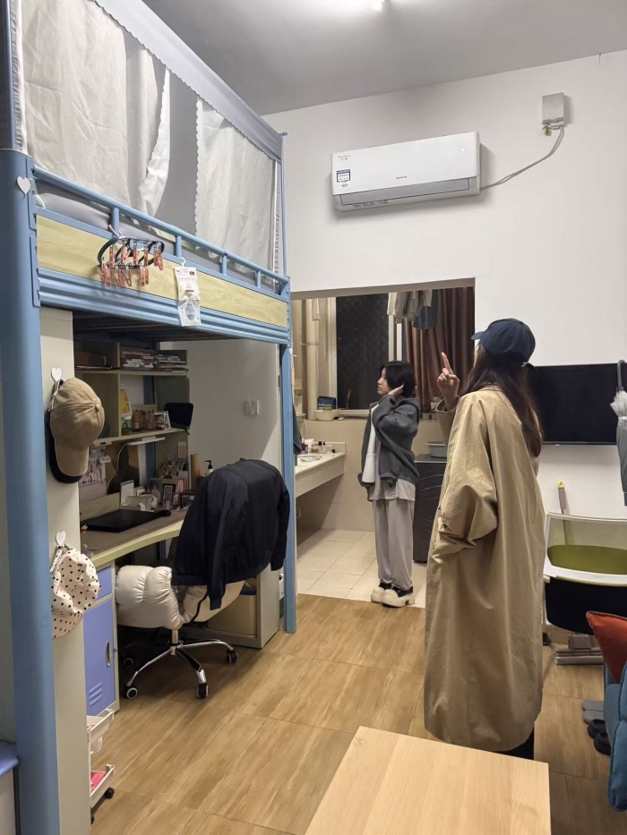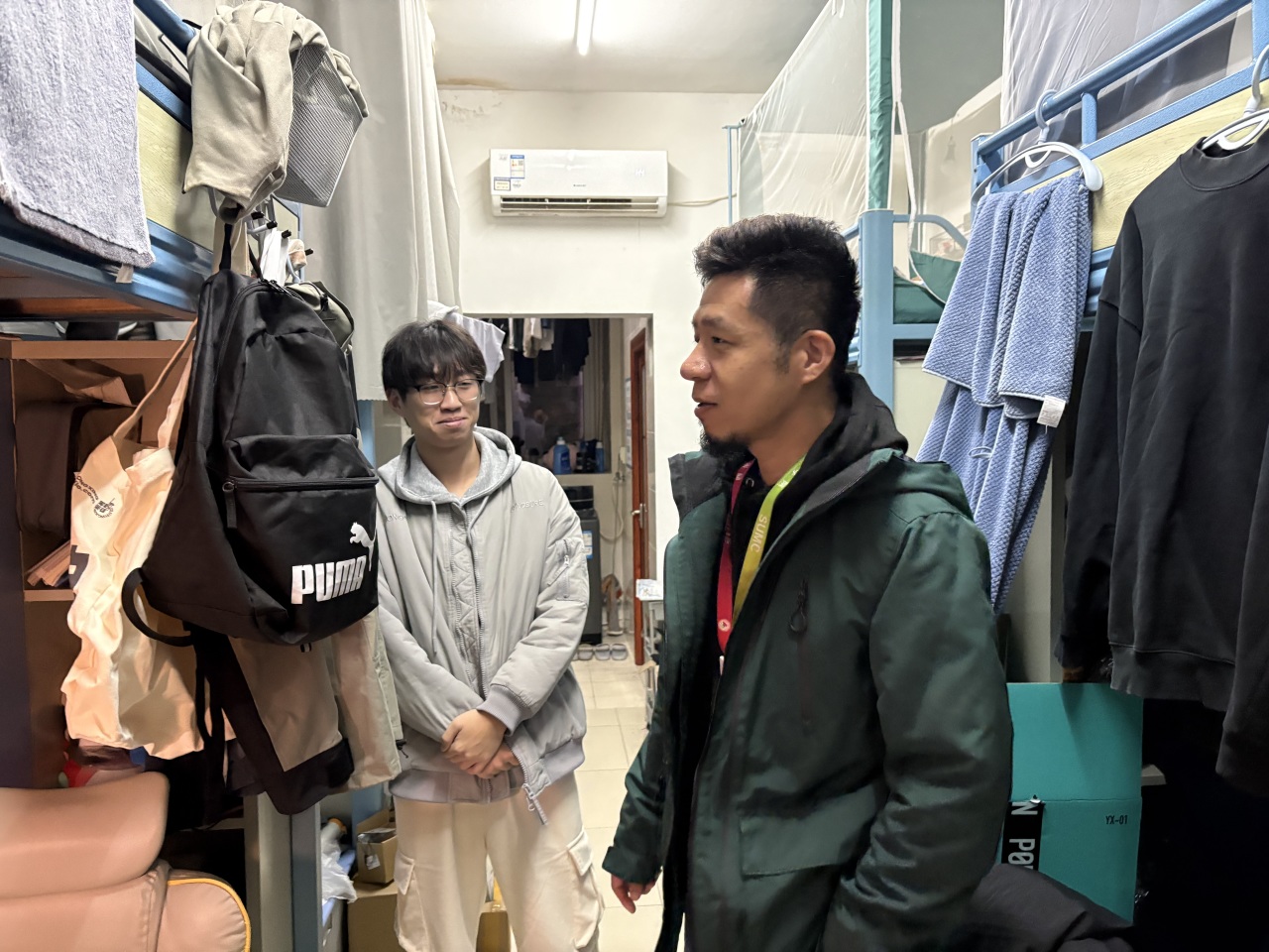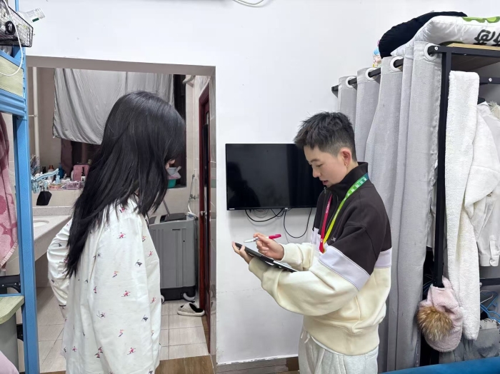 在深入交流的同时,走访团队也对寝室安全卫生进行了全面检查。重点排查违规用电以及消防隐患,从卫生情况、用电规范和文化氛围等维度进行细致记录。