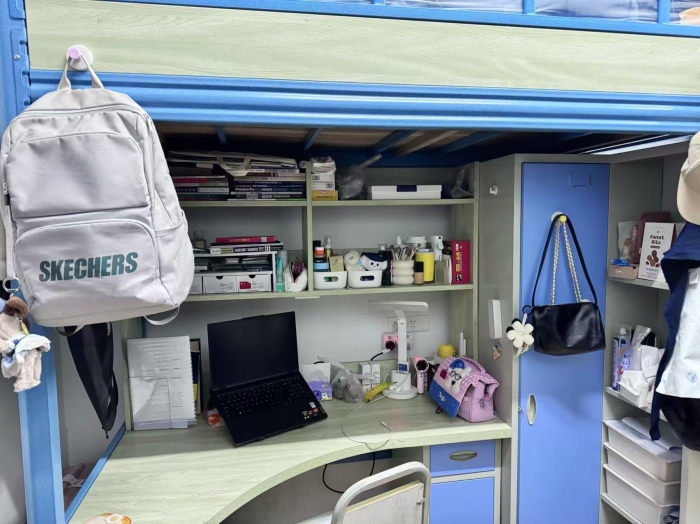 值得肯定的是,多数宿舍通过前期整改,整体环境显著改善。地面无杂物堆积、书本摆放整齐有序,部分寝室还布置了个性化文化角,营造出清新温馨的生活氛围。