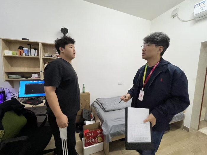 为迎接学校期中安全大检查,由学院党政领导牵头,组织专业主任、教学管理人员以及团总支学生干部,组成多元协同的走访团队,实现了对国际教育学院所有寝室的全覆盖走访。这场走访,从形式到内涵,都与传统查寝有着本质的不同。