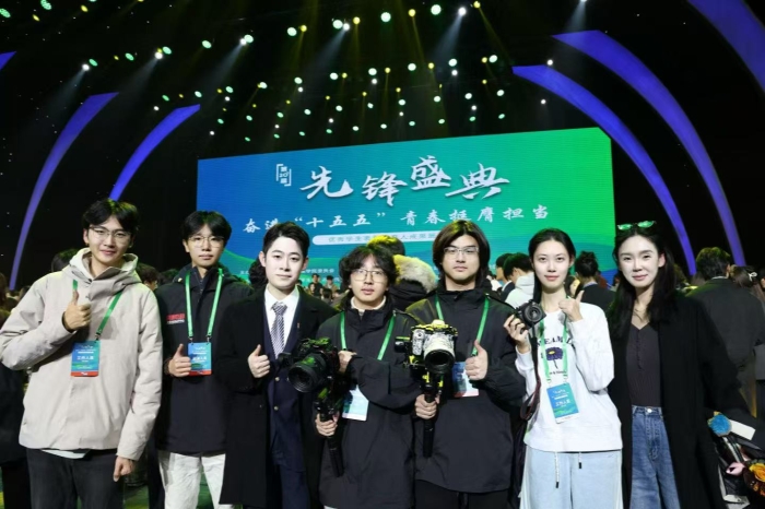 盛典的圆满,离不开台前,也离不开幕后。我院张宸玮、张博玮、戴荣盛、何文磊、修安德、李文欣同学主动参与盛典幕后拍摄工作,以专业的态度扛起相机、调试设备,在现场各个角落记录活动全程。他们用镜头捕捉每一个珍贵瞬间,以实际行动为盛典的顺利开展注入青春力量,展现了国教学子的实干精神与奉献意识。