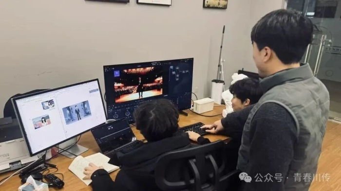 盛典现场,由我院张清辉老师指导、人工智能未来影像实验室创作的 AIGC 先导片《青春》惊艳亮相。作品以前沿人工智能技术,深度学习了历届先锋盛典参与者的影像与声音数据,生成拟真数字角色与语音,将二十载青春记忆——从手绘海报到首演灯光——编织成一场深情的视觉叙事。这不仅是一次技术的创新实践,更是一次跨越时空的对话,生动再现了川传学子从技术探索到精神成长的蜕变轨迹,为辉煌过往致敬,向崭新未来启程。