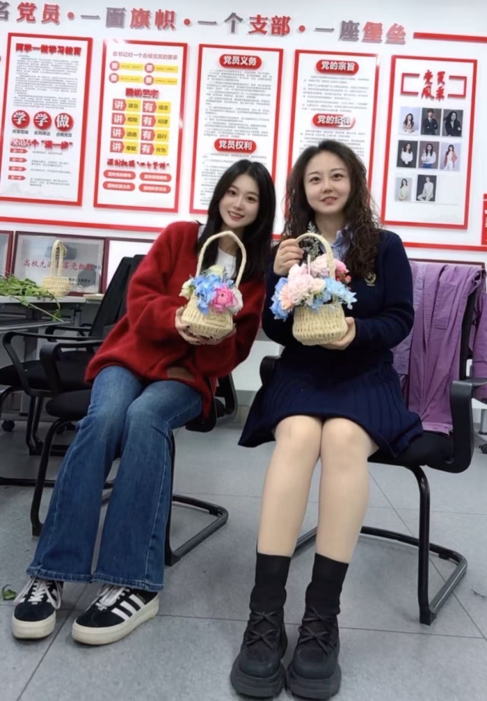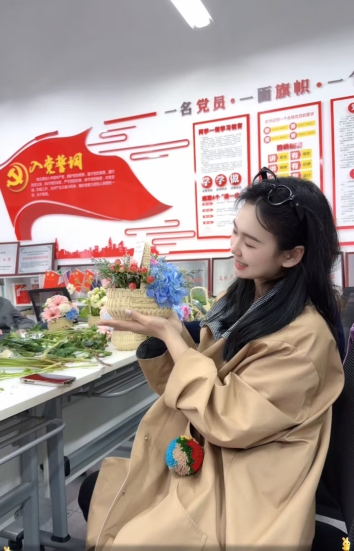 这并非随意布置,而是学院党总支将思想政治引领融入文化活动、于细微处见精神的精心设计。花篮中每一枝花的定位与朝向,寓意着教育工作者对育人方向的把握;花瓣的精心呵护,象征着对学生的爱心与责任;而背后那抹鲜红与铮铮誓言,则是所有温柔与付出的力量源泉和根本遵循。