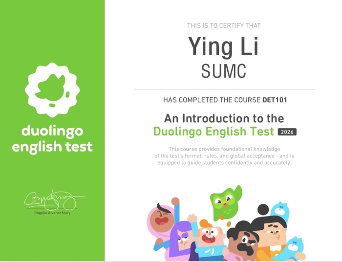 为主动对接国际高等教育前沿动态,精准服务学生海外深造与发展的多元化需求,并培养具备全球视野、熟练运用外语、通晓国际规则的高素质人才,近日,我院英语教研组聚焦“多邻国英语测试”(Duolingo English Test, DET),成功举办专项师资培训。此举是以测促教、以评促学,通过强化教师的国际化测评素养与教学指导能力,反哺课堂教学改革,为全面提升学生的语言应用能力与全球竞争力注入新的动力。