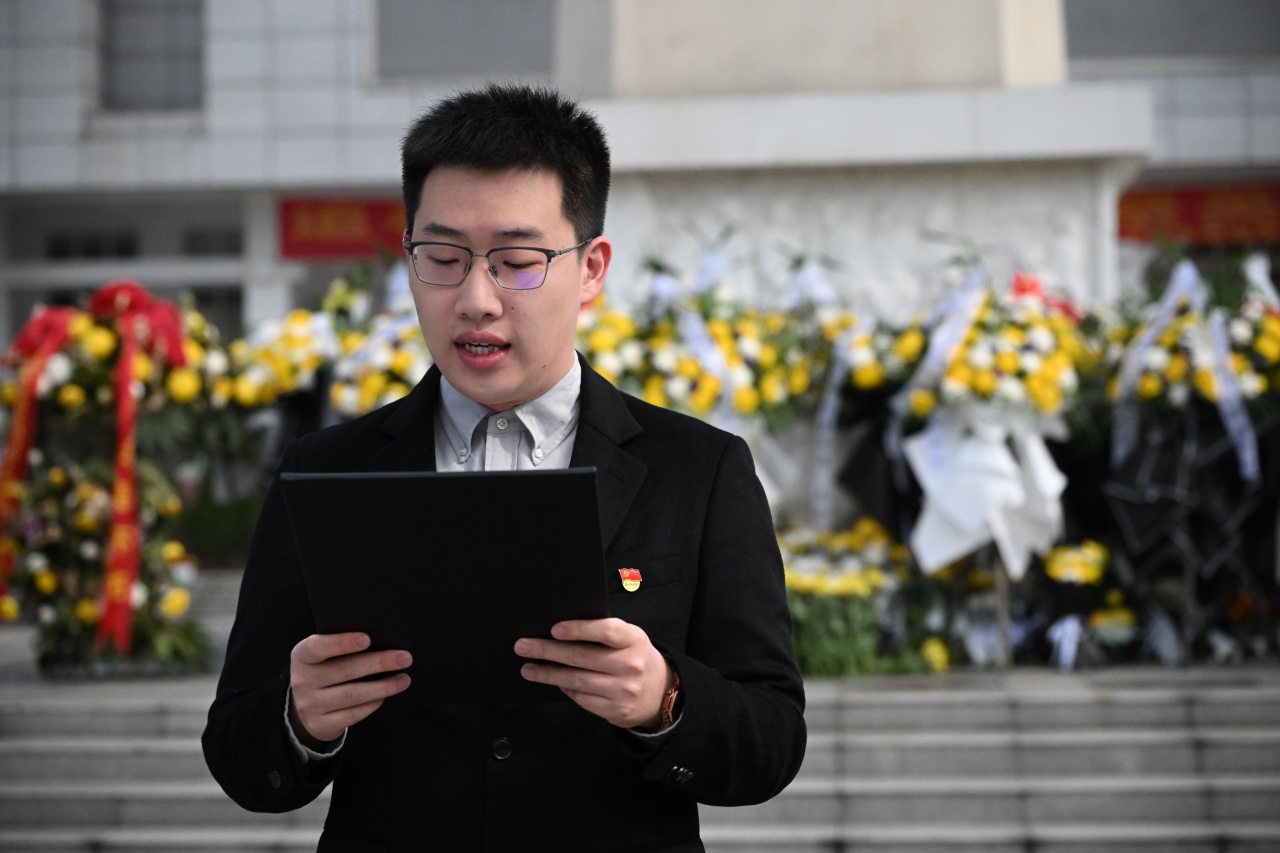 支部党员代表刘瀚元在纪念碑前郑重发言,言辞恳切,满含对革命先烈的缅怀与敬仰。一段段跨越峥嵘岁月的英雄事迹,让在场师生真切感悟到革命先烈为争取民族独立、实现人民解放所作出的巨大牺牲与不朽奉献。